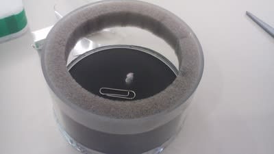 4.アクリルの筒の内側の上端にスポンジを貼り付ける。