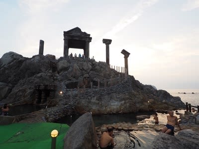 海に臨む公衆混浴露天風呂の湯の浜露天温泉です。