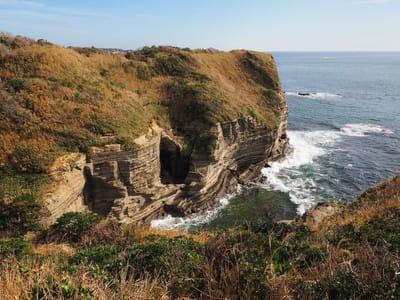 石橋山の戦いで落ち延びた源頼朝が隠れたとされる隠れ穴。
