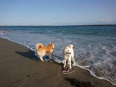 久し振りの砂浜にテンションの上がった(?)愛犬達。