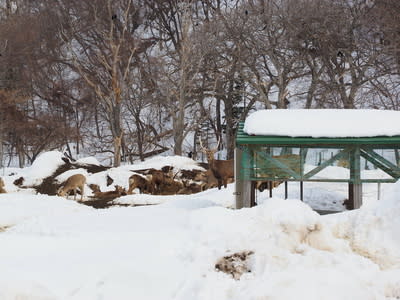 道の駅で昼食を済ませたらウトロの町の南西にあるエゾシカ牧場へ。