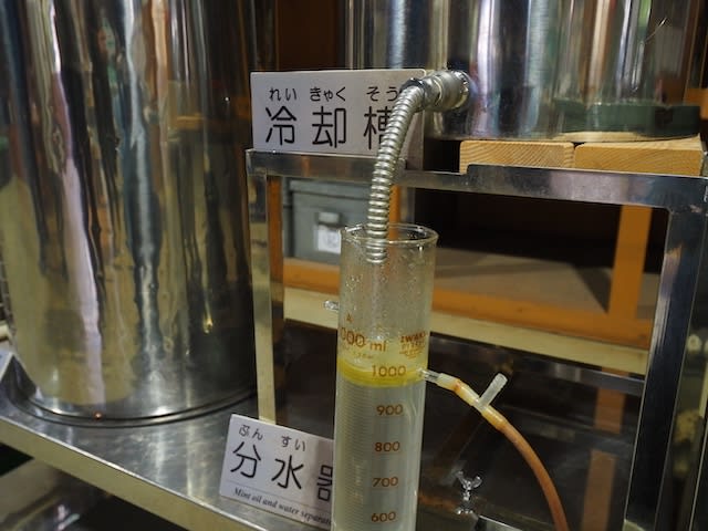 実際にミントを水蒸気蒸留して取卸油を抽出する