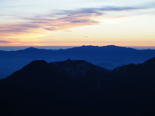 南方を見遣ると更に深みへと続いていく南アルプスの主稜線。