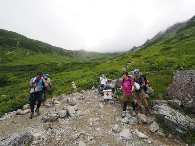 夏山シーズン中のみ救急箱が置かれている分岐点です。