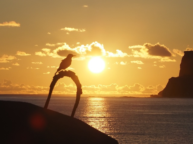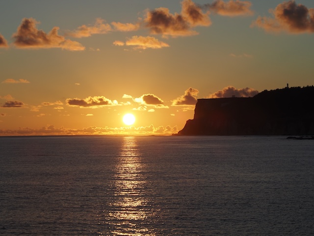 断崖の先の海に沈む夕陽です。
