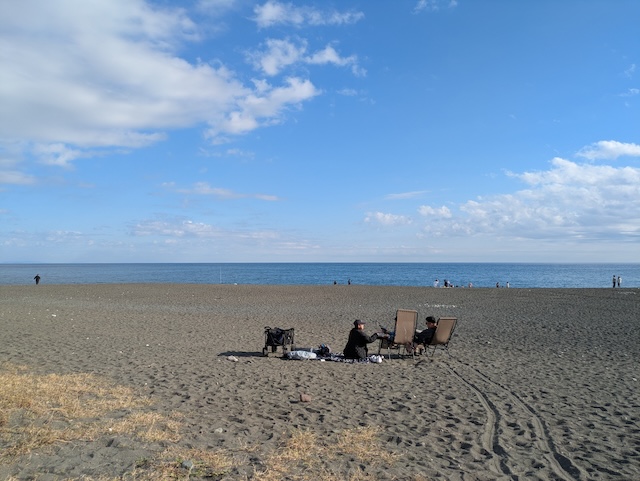 天気が良いのでパンを買って酒匂海岸でピクニックしていました。