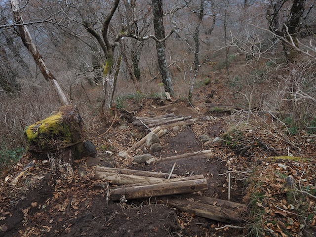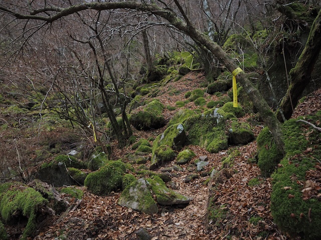 登山者が少ないのか苔が強いのか踏み跡が判然としません。