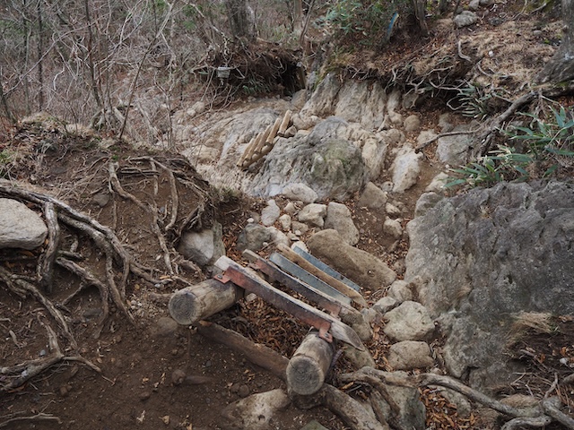 今度は梯子も掛かっている急な下り。