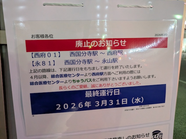 京王バス永81系統西国分寺駅発永山駅行きです。