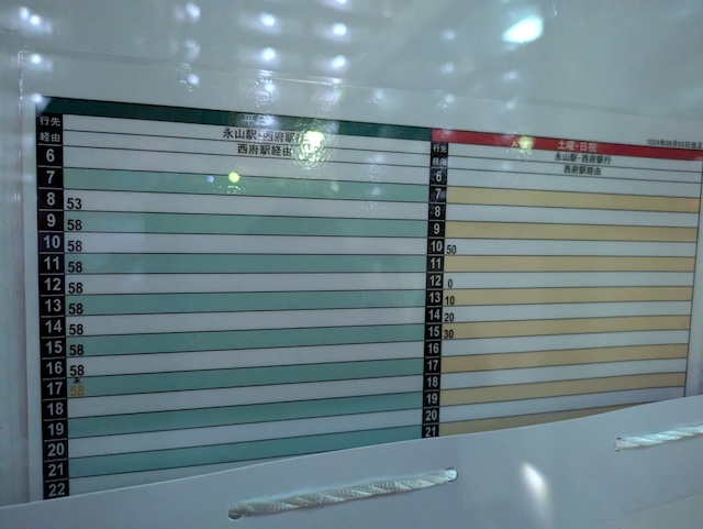 永山駅まで行く便は平日の17:58発の1本のみ。
