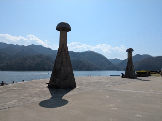 相模湖の湖畔で一休み。