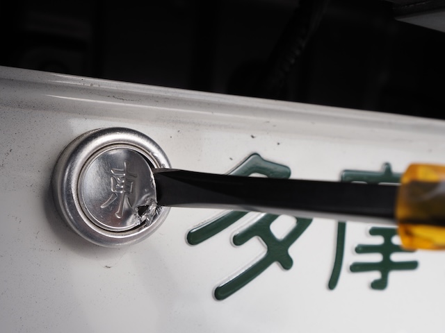 このようにマイナスドライバーを突き立てて封印を破壊します。